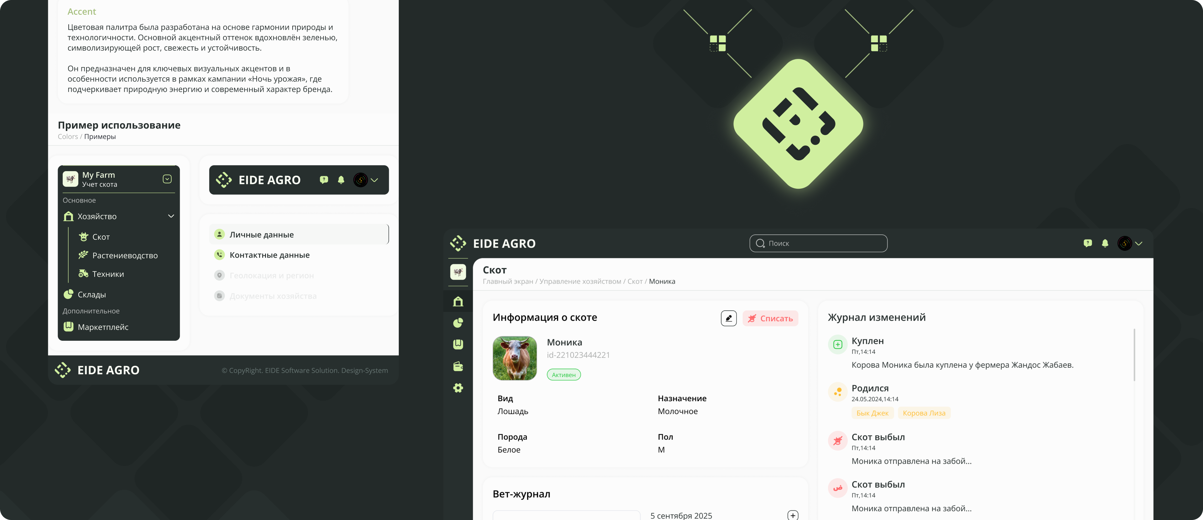 Для AGRO была создана дизайн-система, которая стала единым источником правды для команды разработки. Она позволила обеспечить визуальную консистентность интерфейсов, ускорить разработку и упростить масштабирование продукта. За счёт токенов и переиспользуемых компонентов система поддерживает темизацию.