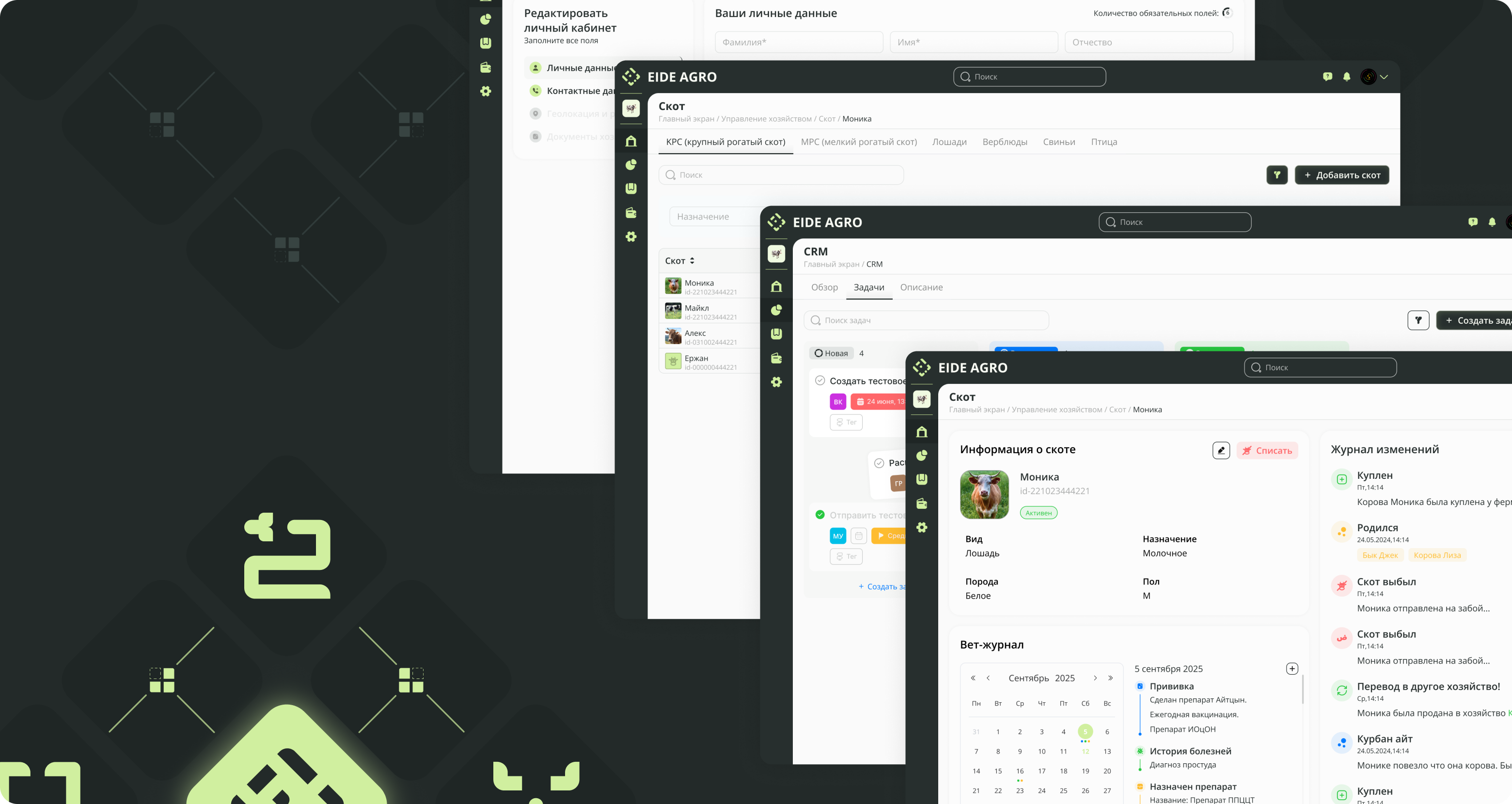 вместо 5+ разрозненных решений (растениеводство, скот, техника, склады, маркет)